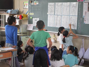 5組におじゃましました。みんなおいそうに食べています。担任の須藤先生によれば、残さずに食べる子が多いそうです。